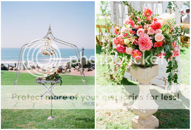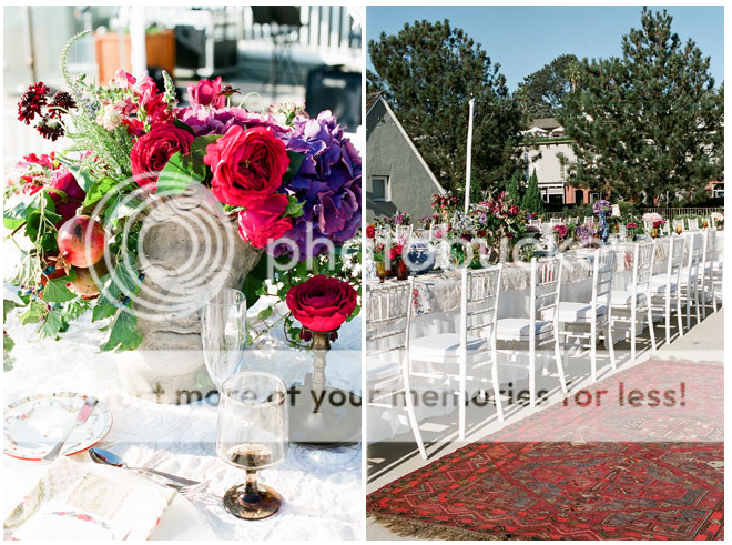 Using urns to display flowers will be popular this year for floral arrangements. The rug on the right displays the boho vibe the couple also incorporated into the theme of the day.