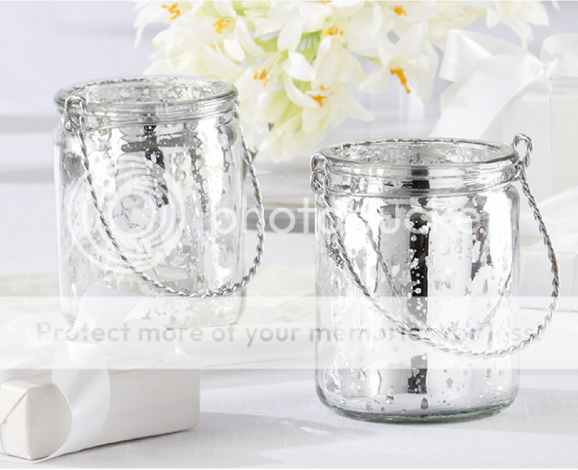 Mercury glass tea light holder. Put candy or another gift in here to give to guests, but the pretty vessel makes a different way of presenting your favor.