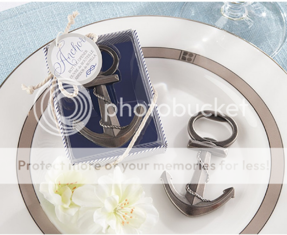 “Anchors Away” Bottle opener. For a nautical or beachside wedding, these beautiful and classy favors will stun your guests.