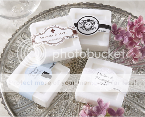 Personalized scented soap. They both look and smell beautiful, these soaps come in lovely packaging that your guests are sure to enjoy and remember for times to come.