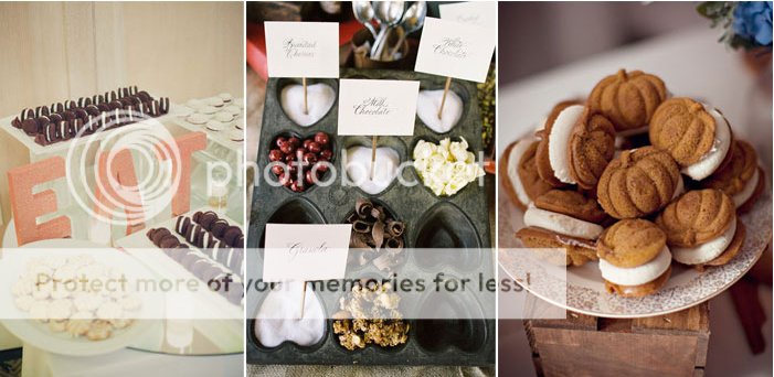 These savory snacks are perfect for cocktail hour, or even the reception instead of a buffet. From tacos, to DIY grilled cheese, even put-it-together potatoes, there is bound to be something to appeal to everyone’s taste buds.