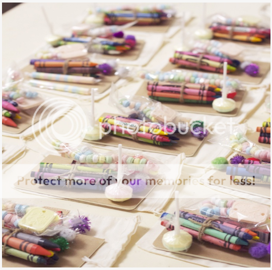 Crayons and candy: Make cute little bundles of crayons and lollipops for each table setting. Coloring is always a great and easy way to keep kids occupied, not to mention it’ll keep their creative juices flowing!